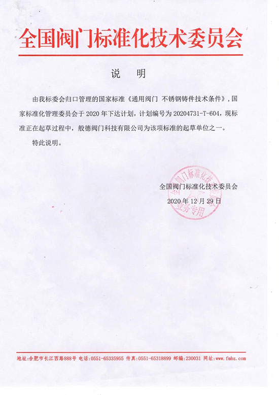 圖|般德閥門是《通用閥門 不銹鋼鑄件技術條件》標準的起草單位之一