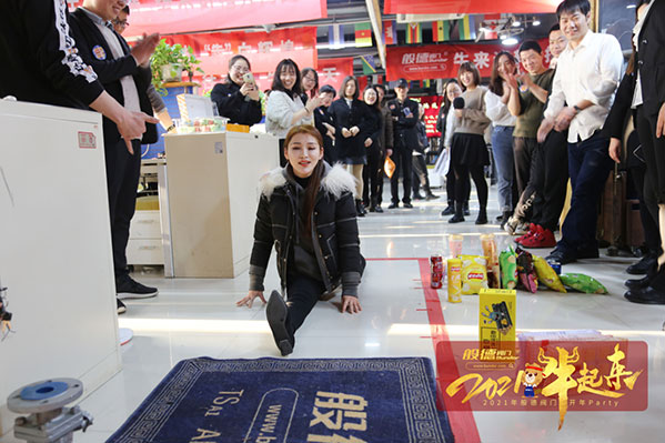 發(fā)言完畢,是令人期待的游戲環(huán)節(jié),“鴻運(yùn)當(dāng)頭”、“財(cái)源滾滾”、“躍努力躍幸運(yùn)”、“你劃我猜”四個(gè)游戲?qū)㈤_年party的熱烈氛圍推向高潮,禮品多多,歡樂多多,大家都積極參與到游戲中。