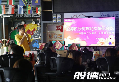 積分制快樂會議對前一階段的積分排名情況進行了公示,對積分排名名列前茅的伙伴們進行了激勵,每個人都得到了心儀的禮物。越努力越幸運,希望伙伴們繼續勇往直前!JQU般德閥門