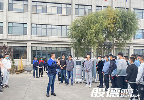 般德閥門總經(jīng)理夏許超先生和工廠工作人員對師生進行了熱情接待,為天津機電職業(yè)技術(shù)學院的師生們介紹了般德閥門的發(fā)展歷程、工廠概況、資質(zhì)榮譽、企業(yè)文化等,接著帶領(lǐng)師生對生產(chǎn)車間、倉庫、實驗室等進行了參觀和詳細解說。