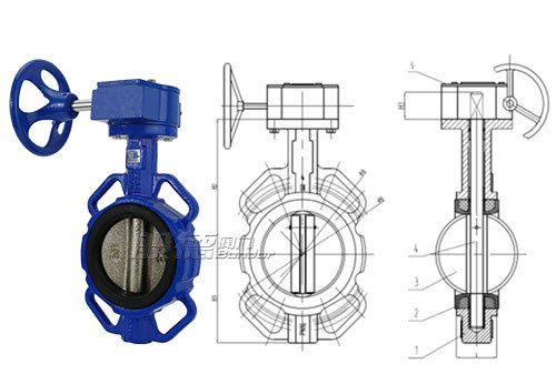 | 1-閥體 | 2-閥座 | 3-蝶板 | 4-閥軸 | 5-渦輪 |